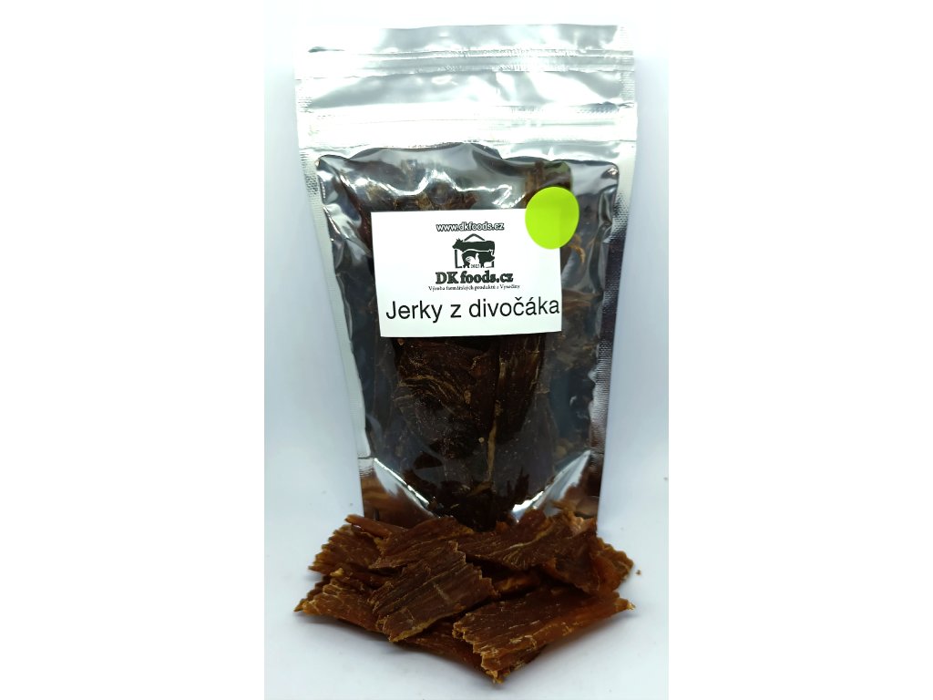 „Tohle jerky je vyrobené z masa divočáka – tedy opravdu z volné přírody, nejde o žádný farmový chov. Je nepálivé, takže si ho mohou vychutnat i ti, kdo dávají přednost jemnějším chutím. Má autentickou chuť zvěřiny, která se liší od klasického vepřového. Balení má 40 g, je bez éček a konzervantů. Je to skvělá specialita k vínu nebo jako originální svačina do přírody.“