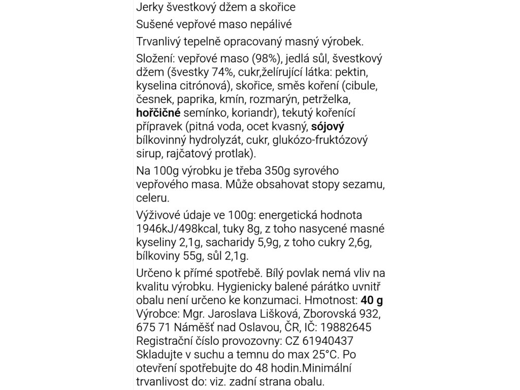 Jerky vepřové švestkový džem-skořice nepálivé