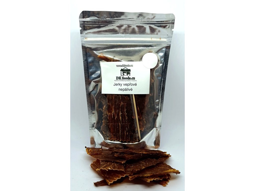 Naše Jerky vepřové nepálivé jsou vynikající volbou pro milovníky sušeného masa, kteří preferují jemnější chuťové zážitky bez pikantnosti. Tento produkt je vyroben z kvalitního vepřového masa, které je pečlivě zpracováno a ochuceno, aby nabídlo lahodnou a vyváženou chuť. Jerky jsou ideální jako zdravá svačina na cesty, do práce nebo pro sportovce hledající rychlý zdroj bílkovin.